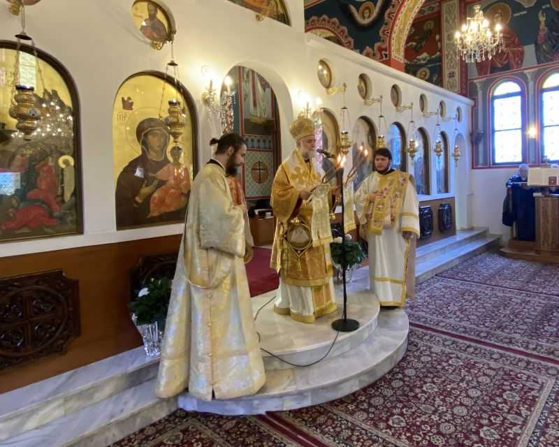 Την κυριώνυμη ημέρα, ο Θεοφιλέστατος Επίσκοπος Σκοπέλου κ. Νικόδημος χοροστάτησε κατά τον Όρθρο, προέστη της Θείας Λειτουργίας και κήρυξε τον θείο λόγο, αναφερθείς στην θεϊκή αποκάλυψη του Ιησού Χριστού, ως αρχηγού της ζωής και νικητή του θανάτου, όπως αυτή περιγράφεται στην αναγνωσθείσα ευαγγελική περικοπή της λειτουργικής συνάξεως (Ιωάν. ια΄, 1-45). Μάλιστα, επεσήμανε ότι ο Χριστός λέει στη Μάρθα “Εγώ ειμί η Ανάστασις”. Για πρώτη φορά μια έννοια, μια αφηρημένη μάλιστα έννοια, όπως η Ανάσταση, η απρόσωπη έννοια Ανάσταση, γίνεται ιστορικό πρόσωπο, γίνεται ο Κύριος μας Ιησούς Χριστός. Είναι μία τρελή εξίσωση. Το αφηρημένο, να είναι συγκεκριμένο. Το απρόσωπο, να είναι προσωπικό. Η Ανάσταση, να είναι ο Χριστός. Αντιστροφή λογικών βεβαιοτήτων…
