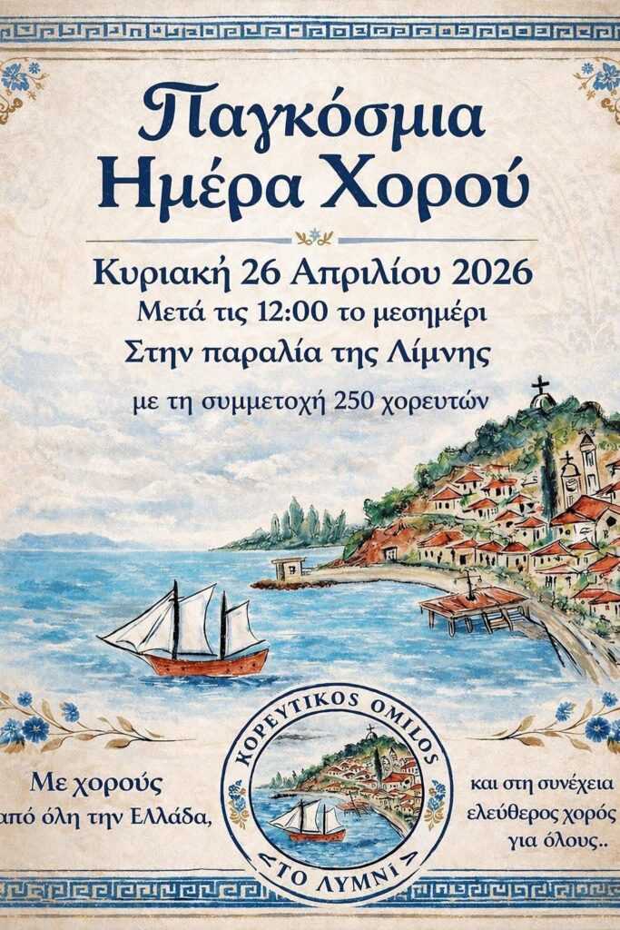 Με μια μεγάλη γιορτή γεμάτη παράδοση, μουσική και χορό, θα τιμηθεί η Παγκόσμια Ημέρα Χορού την Κυριακή 26 Απριλίου στη Λίμνη Ευβοίας.