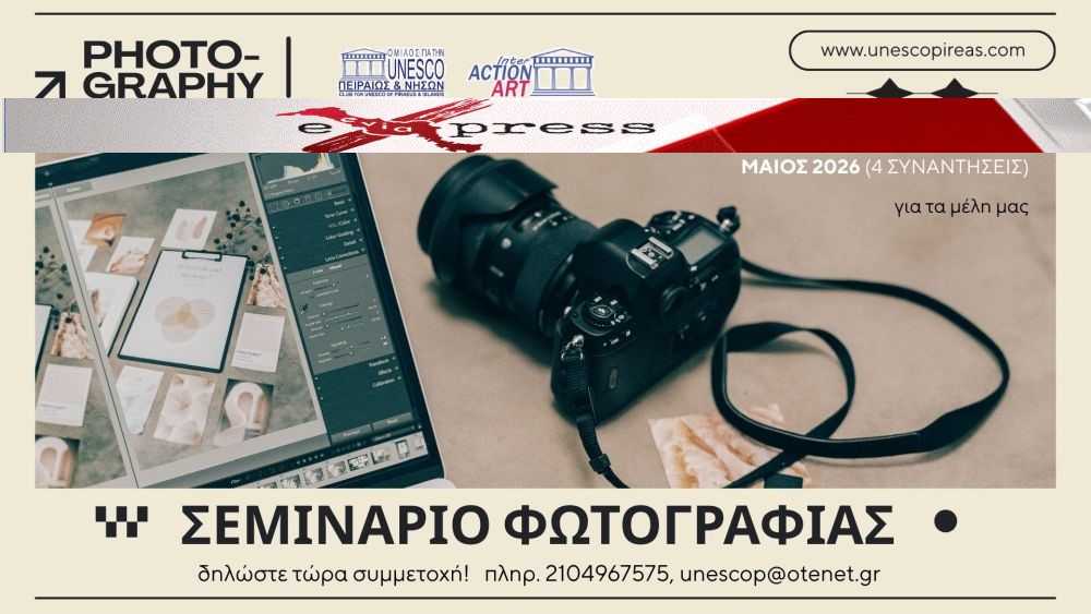 Ο Όμιλος για την UNESCO Πειραιά και Νήσων σας ενημερώνει για τα σεμινάρια φωτογραφίας.