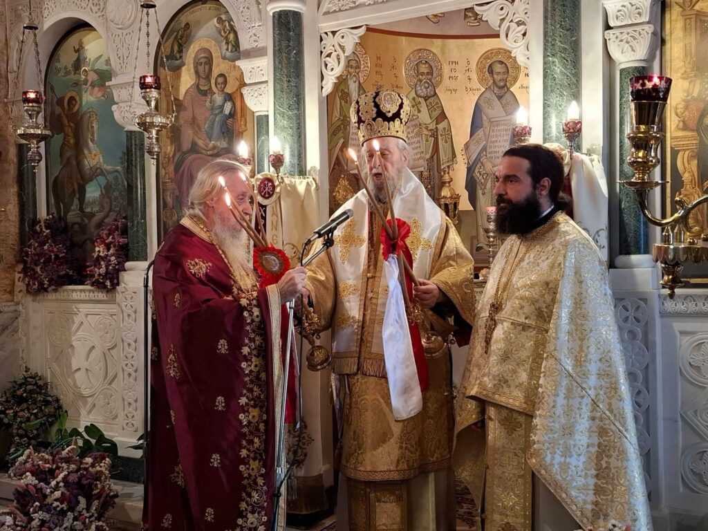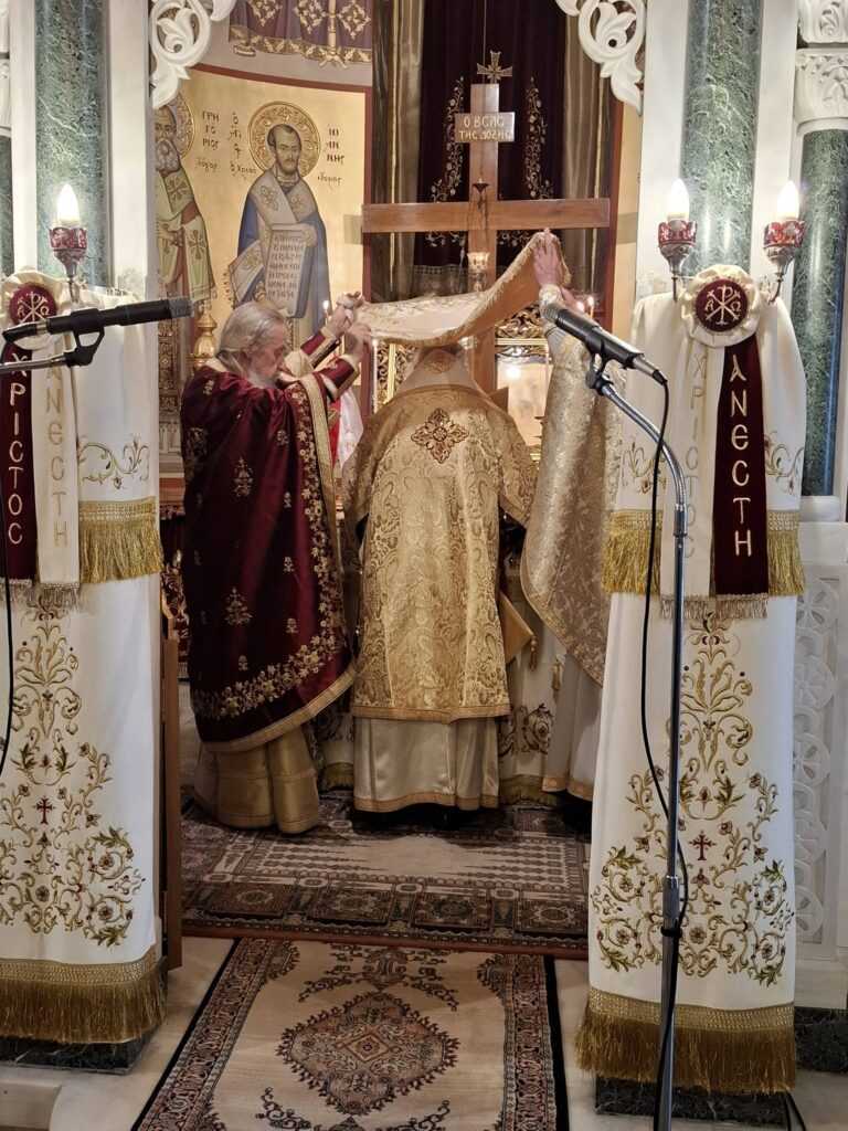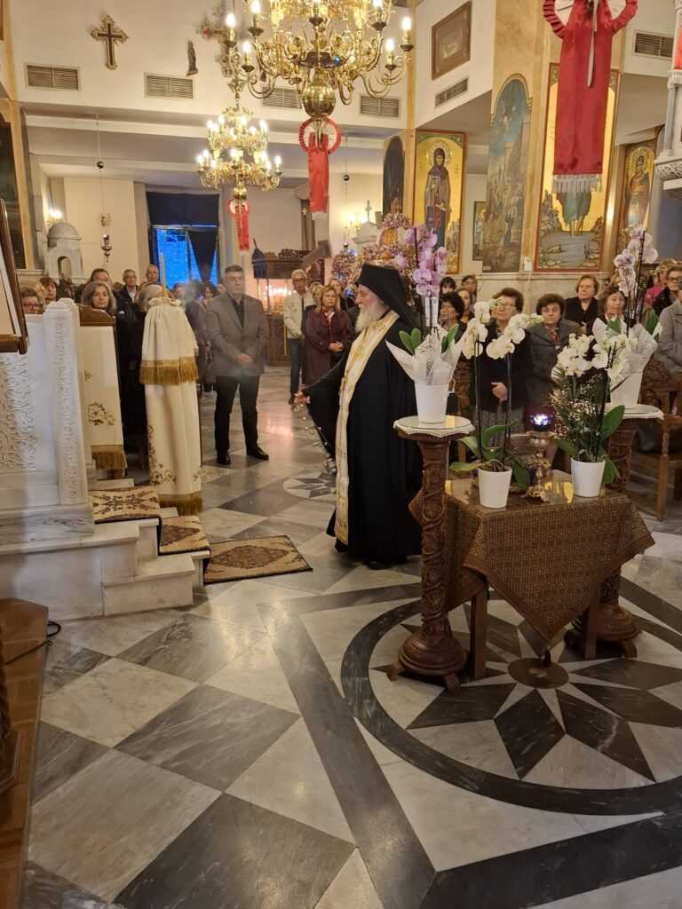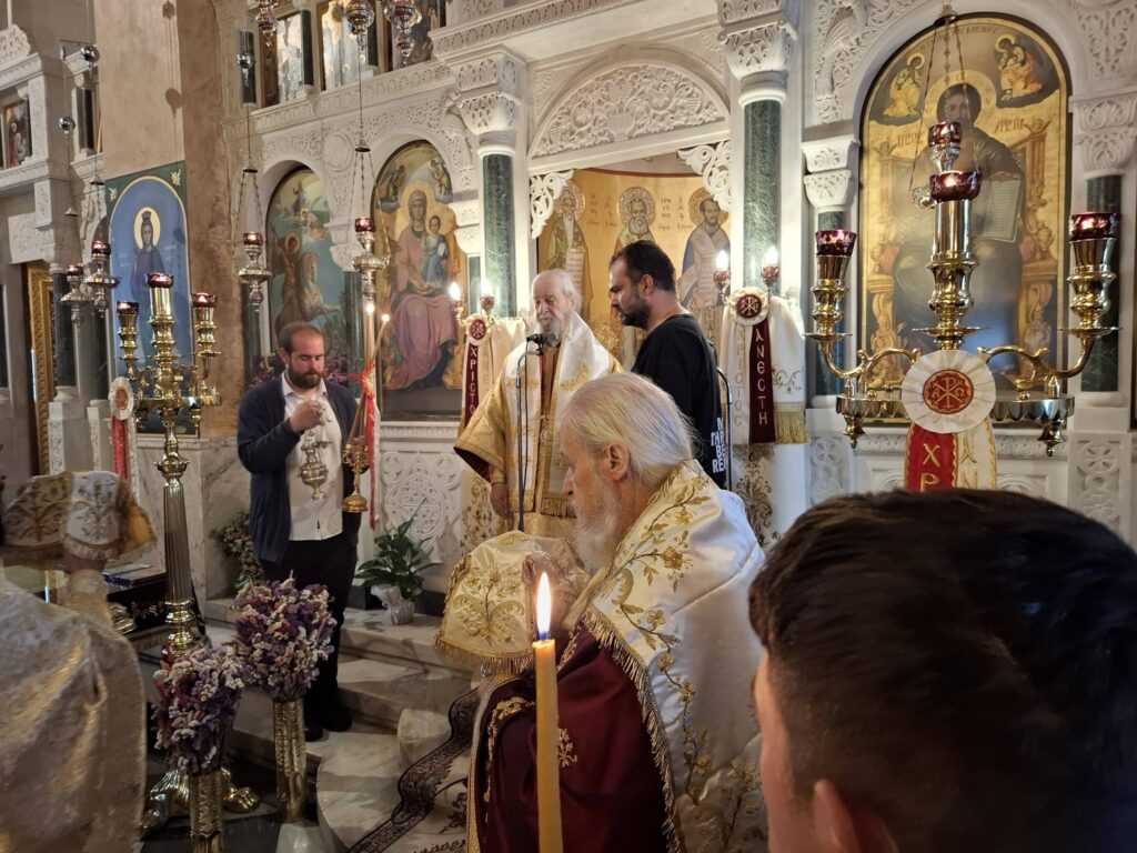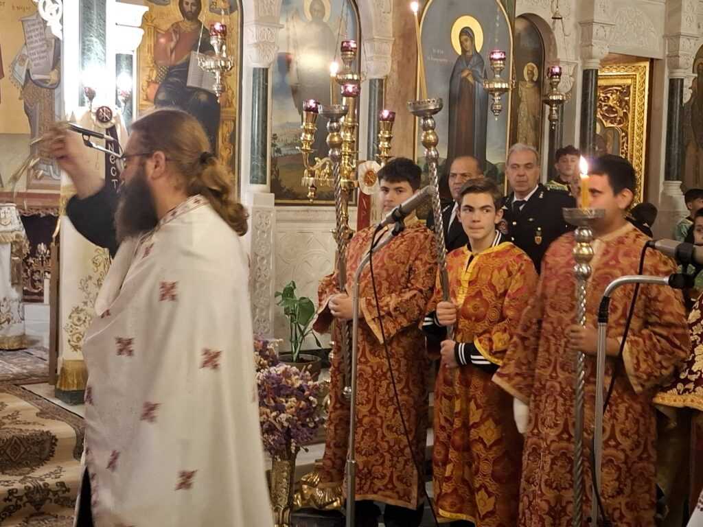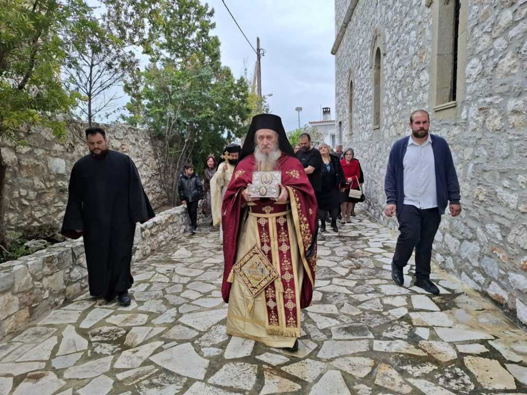Την κυριώνυμο ημέρα της εορτής στον προαναφερθέντα ιερό ναό έλαβε χώρα η Αρχιερατική Θεία Λειτουργία απο τον Πρύτανη της Ιεραρχίας Σεβασμιώτατο Μητροπολίτη Καρυστίας και Σκύρου κ. Σεραφείμ πλαισιούμενος απο τον Πρωτοσύγκελλο Πανοσ Αρχιμ Νικόδημο Πόγκα και τον Πανοσ Αρχιμ Νικόδημο Τσιμόγιαννη Ιεροκήρυξ της Ιεράς Μητροπόλεως και εφημέριο του ιερού ναού.