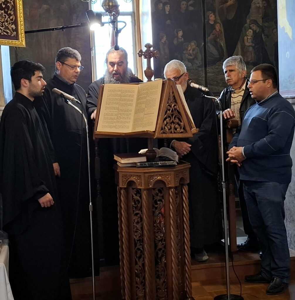 Επίσης τους ύμνους της εορτής απέδωσαν ο Διευθυντής της Σχολής Βυζαντινής Μουσικής της Ιεράς Μητροπόλεως Καρυστίας Πρωτοπρ Σωτήριος Τσούγκας εφημέριος Αετού επαρχίας Καρύστου με τους ιεροψάλτες του ιερού ναού κ. Χαράλαμπο Μαζαράκη καικ. Αντώνιο Κακαράτζα.