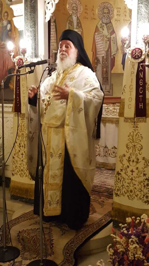 Τέλος ο Σεβασμιώτατος κ. Σεραφείμ αναφέρθηκε στον σημερινό τιμώμενο Άγιο Γεώργιο λαμβανοντας αφορμή το μαρτυρικό τέλος του απο το οποίο αναδείχθηκε μιμητής του πάθους και μάρτυρας της Αναστάσεως..
